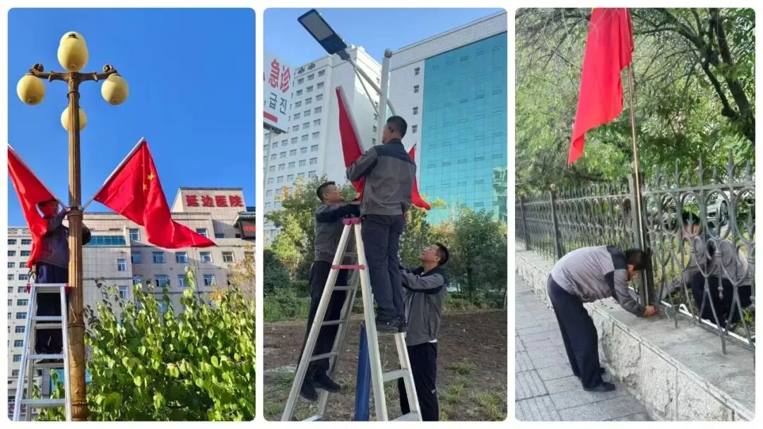 国庆佳节将至,为营造庄严喜庆、团结奋进的节日氛围,延边大学附属医院(延边医院)行政四党支部积极组织支部党员并联合后勤科室群众,在院内开展悬挂国旗活动,以一抹抹“中国红”为院区注入节日活力。