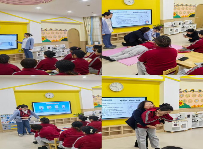 活动现场互动氛围热烈。老师们全程认真聆听讲解,积极参与实操演练,针对日常保教工作中可能遇到的各类突发情况踊跃提问,护理团队成员耐心细致地逐一解答,切实保障了健康知识的有效传递与急救技能的精准指导。