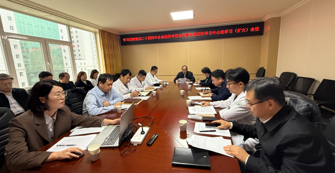 10月29日,延边大学附属医院(延边医院)在行政楼517会议室召开学习贯彻党的二十届四中全会精神专题会议暨党委理论学习中心组学习(扩大)会议。院领导班子成员、党委委员、党总支书记出席会议,会议由党委书记熊焕章主持。