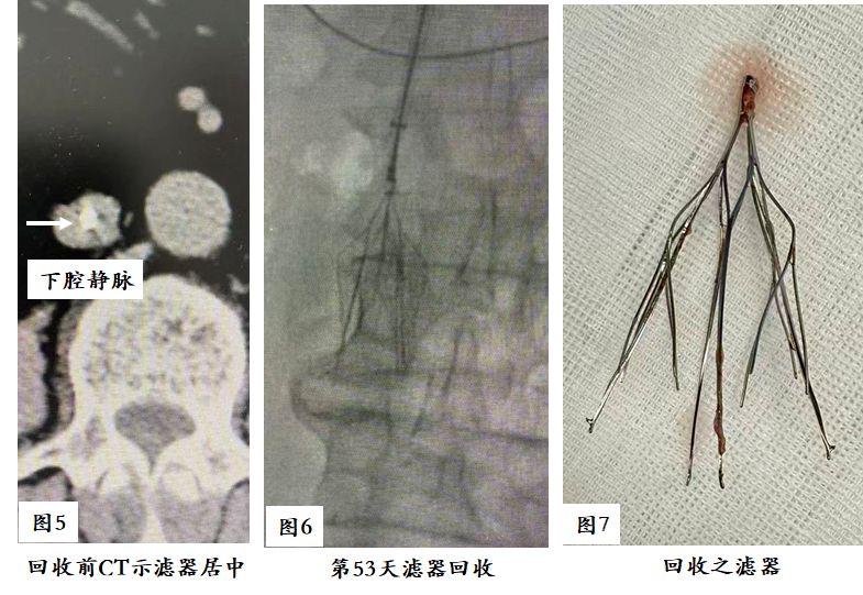 (6)2025年研究出难回收下腔静脉带孔滤器(倾斜、贴壁)的“延边方法”。
