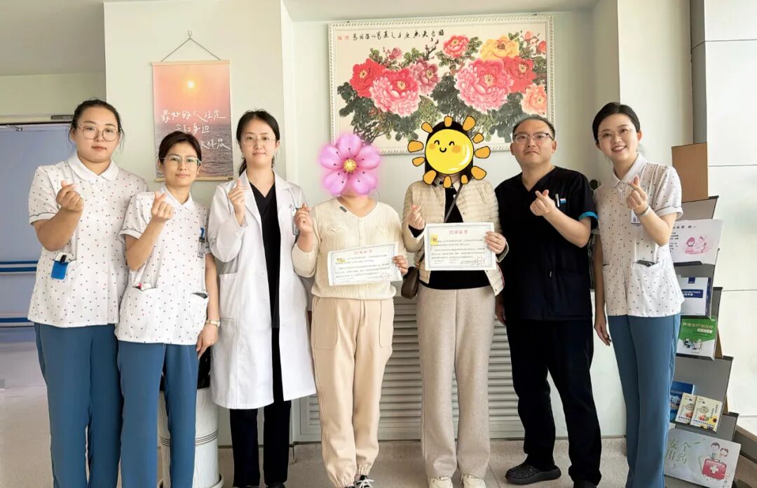 “恭喜您顺利‘结业’!”内十一护理单元个案管理师团队将精心设计、制作的“结业证书”郑重地交到她手中,证书上写着:“病友B同志,由于治疗期间表现良好,已完成规定的治疗周期,经过肿瘤科全体医护人员考评合格,现予以结业。希望在今后的生活中你能继续保持积极乐观的心态,坚持健康的生活方式,定期进行复查。同时,也希望你能将治疗期间的这份坚韧和勇气传递下去,鼓励更多正在与病魔抗争的人。”