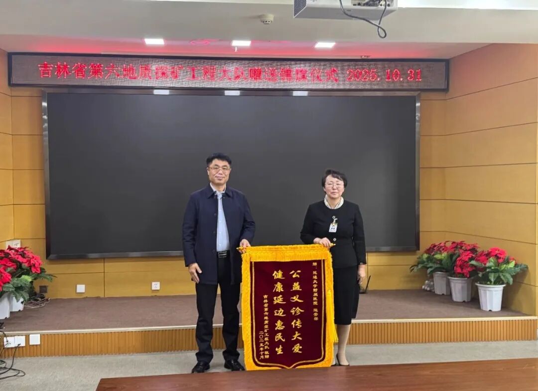 一面锦旗,一份认可;一句感谢,一份信赖。10月31日,吉林省第六地质探矿工程大队党委书记、队长高洪志,副队长孙喜庆带队来到延边大学附属医院(延边医院),将承载着满满感激的多面锦旗送到医院,以此感谢医院“健康延边千天计划”义诊团队,为其职工提供专业、优质的健康义诊服务。