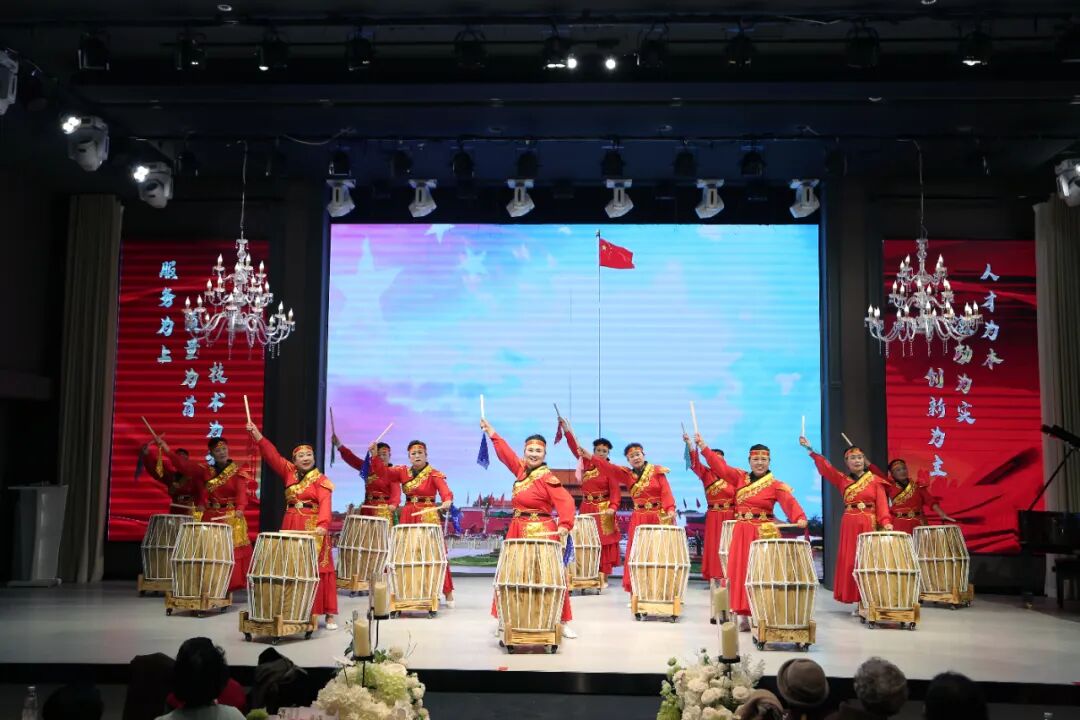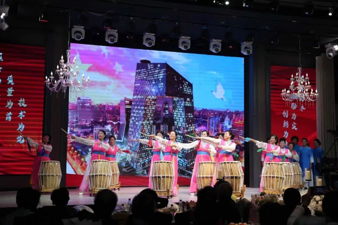 激动人心的演出环节,离退休活动中心鼓舞活动小组的老同志们精心准备的立鼓舞蹈《祖国你好》拉开了演出序幕。铿锵的鼓点,击出了昂扬的风貌,激昂的旋律,瞬间点燃了现场气氛。