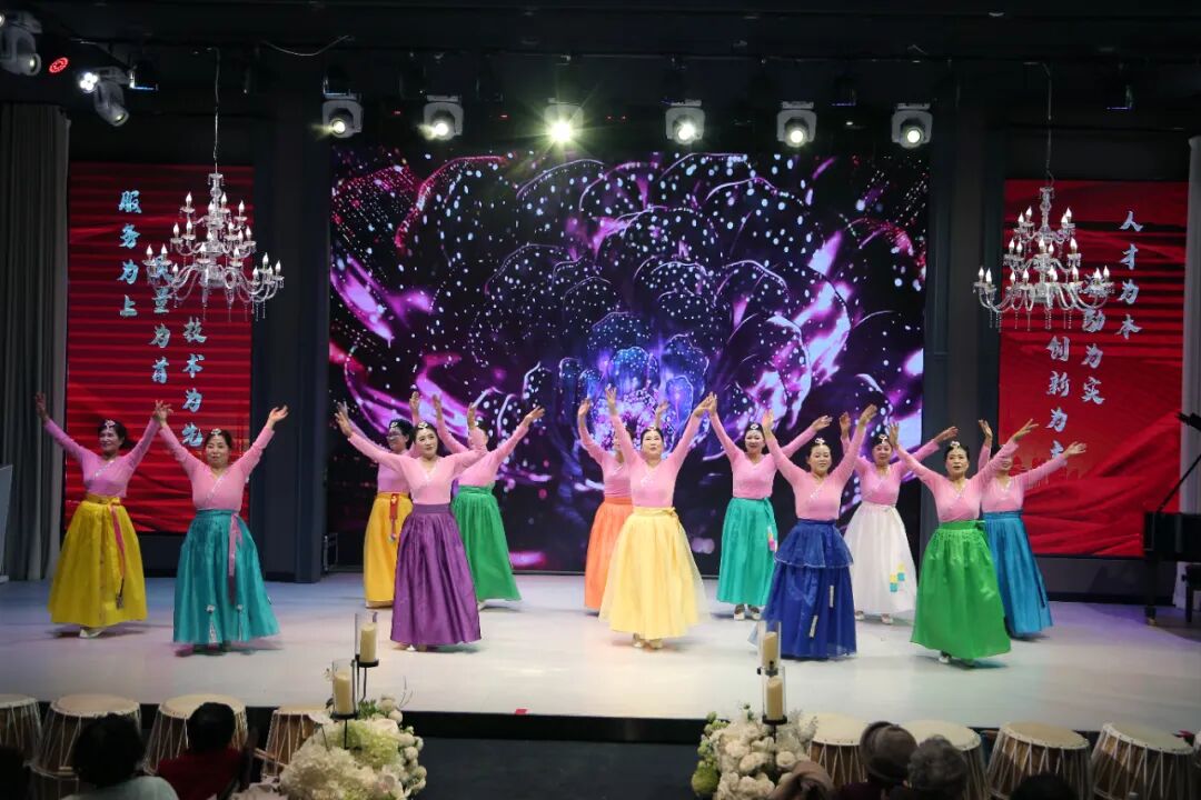 随后独唱《洋槐花绽放时》,交谊舞《冰雪天堂》,太极莲花扇《红梅赞》,民族舞《兴阿里郎》,延吉市第六套广场舞等一系列歌舞表演,精彩纷呈,让台下的离退休老同志们目不暇接,掌声不断。