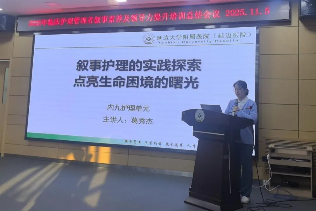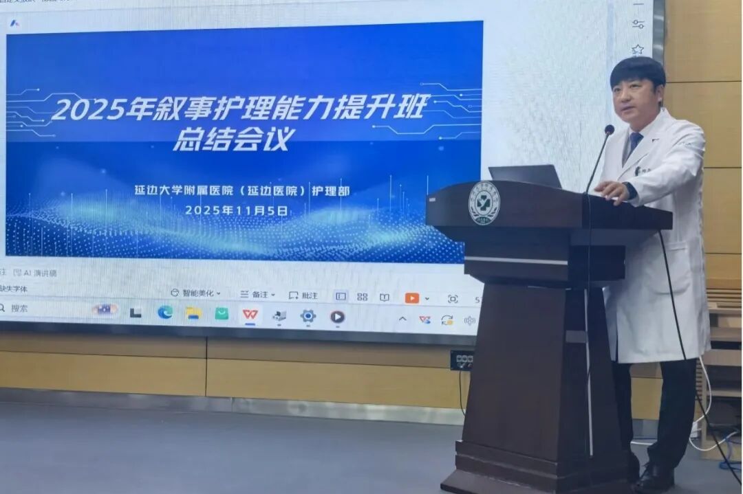 11月5日,延边大学附属医院(延边医院)护理部举办的2025年临床护理管理者叙事素养及领导力培训班结业总结会议圆满落下帷幕。延边大学护理学院院长金锦珍、附属医院副院长金雄杰出席会议,并为培训班优秀学员颁发了证书。