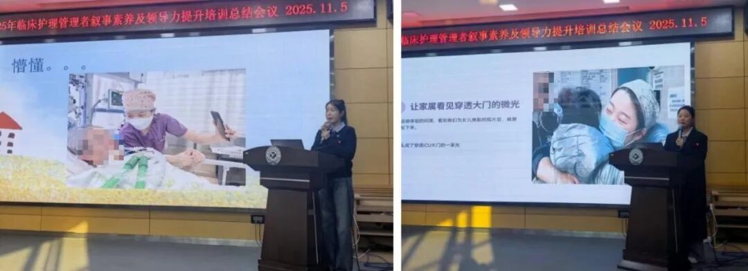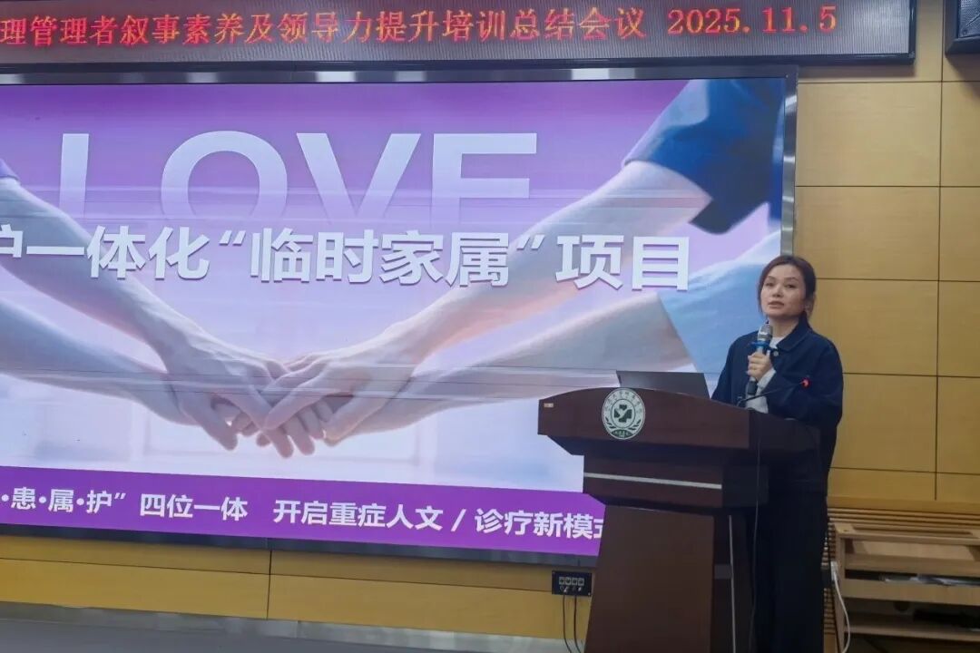 会议以鲜活的临床实践叙事开启核心环节。重症医学科团队带来的“临时家属”项目分享,揭开了ICU照护的温情密码。面对无家属陪护的重症患者,护理团队不仅精准落实治疗护理,更主动化身患者“家属”:牢记患者的需求细节,在治疗间隙轻声同步病情进展,为昏迷患者细致整理衣物、擦拭身体,用持续的倾听与回应填补家属缺位的空白,真实的细节让在场管理者深切体会到叙事护理的实践力量。