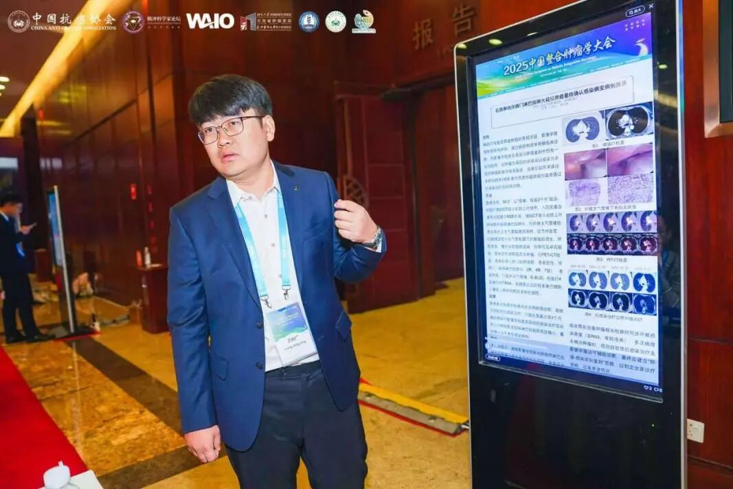 此外,大会同期开展学术论文征集活动,王知广投稿论文成功入选并获大会壁报展示。交流期间,他分享了1例少见的、以肺部肿瘤为影像学特征、最终经抗感染治疗后痊愈的病例,为临床中肺部感染与肿瘤难以鉴别诊断的复杂情况提供了宝贵思路,引发与会专家广泛关注与讨论。