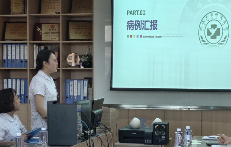 讨论环节气氛热烈,谢丽丽引导该护理单元成员围绕查房主题展开头脑风暴,护理骨干从多维度分享见解,护理部专家适时点拨,推动讨论向纵深发展,形成多项具有实践指导意义的共识。值得关注的是,刚圆满完成进修的中医治疗专科护士张雪莹副护士长,结合本次病例实际,生动介绍了多项适配外科病房的中医护理技术,分享内容新颖实用,引发在场护理同仁的浓厚兴趣与热烈探讨,为外科患者快速康复提供了特色“中医方案”。