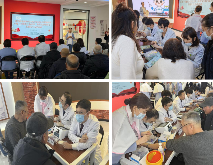 活动筹备阶段,各党支部高度重视,通过与新阳社区党群服务中心提前沟通对接,全面摸清社区居民的年龄结构、健康需求等实际情况,针对性制定活动方案,从科普内容筛选、义诊科室调配到现场流程布置,均进行了精心筹备与周密部署,为活动顺利开展筑牢基础。