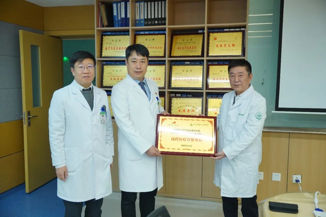 当日,“远程医疗合作单位”挂牌仪式也顺利举行。韩明哲教授与我院副院长于海强共同为合作牌匾揭牌,标志着我院与中国医学科学院血液病医院的战略合作进入实质性落地阶段。此次挂牌是响应国家分级诊疗制度建设及乡村振兴战略的重要举措,未来双方将进一步深化资源共享、优势互补,通过远程会诊、技术支持、双向转诊等方式,让区域内血液病患者无需远行就能享受到国内顶尖的医疗服务,切实解决百姓“看病难、看病贵”的问题。
