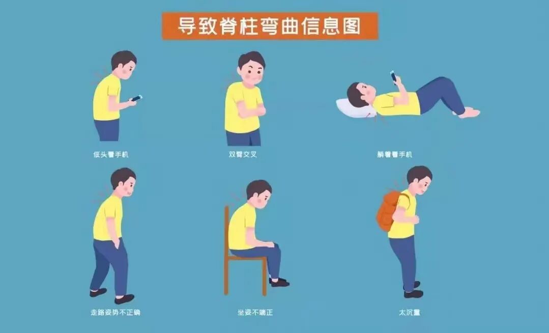 当前,儿童青少年不良的生活习惯,如喜食零食、饮料、高油食品,久坐不动,坐姿站姿不良、缺乏运动、熬夜等,导致脊柱侧弯和肥胖问题发生率逐年上升。脊柱侧弯若未及时干预,可能引发背部疼痛、高低肩、胸廓畸形等问题,影响身体形态与生理功能;体重超标则会增加高血压、脂肪肝、糖尿病等慢性疾病的患病风险,还可能对心理健康产生负面影响。