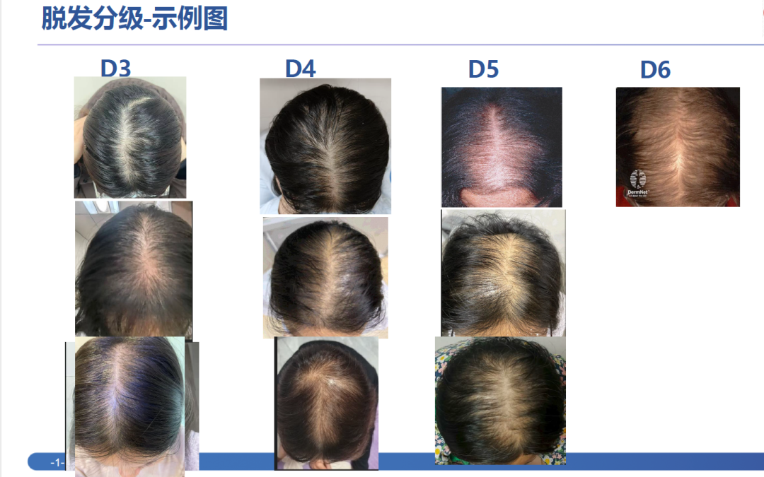 4.脱发严重程度按照Savin分级符合D3至D6级;