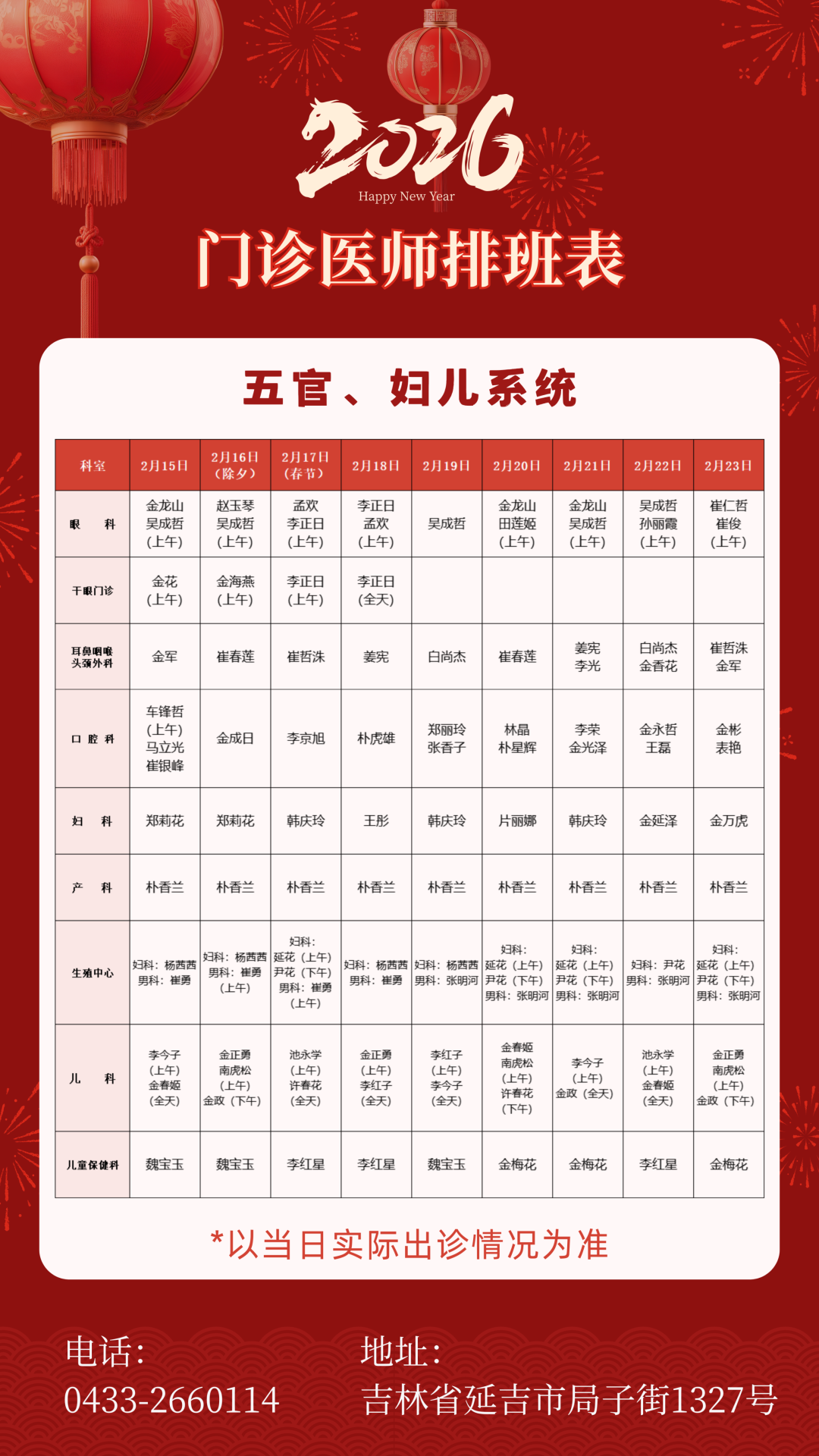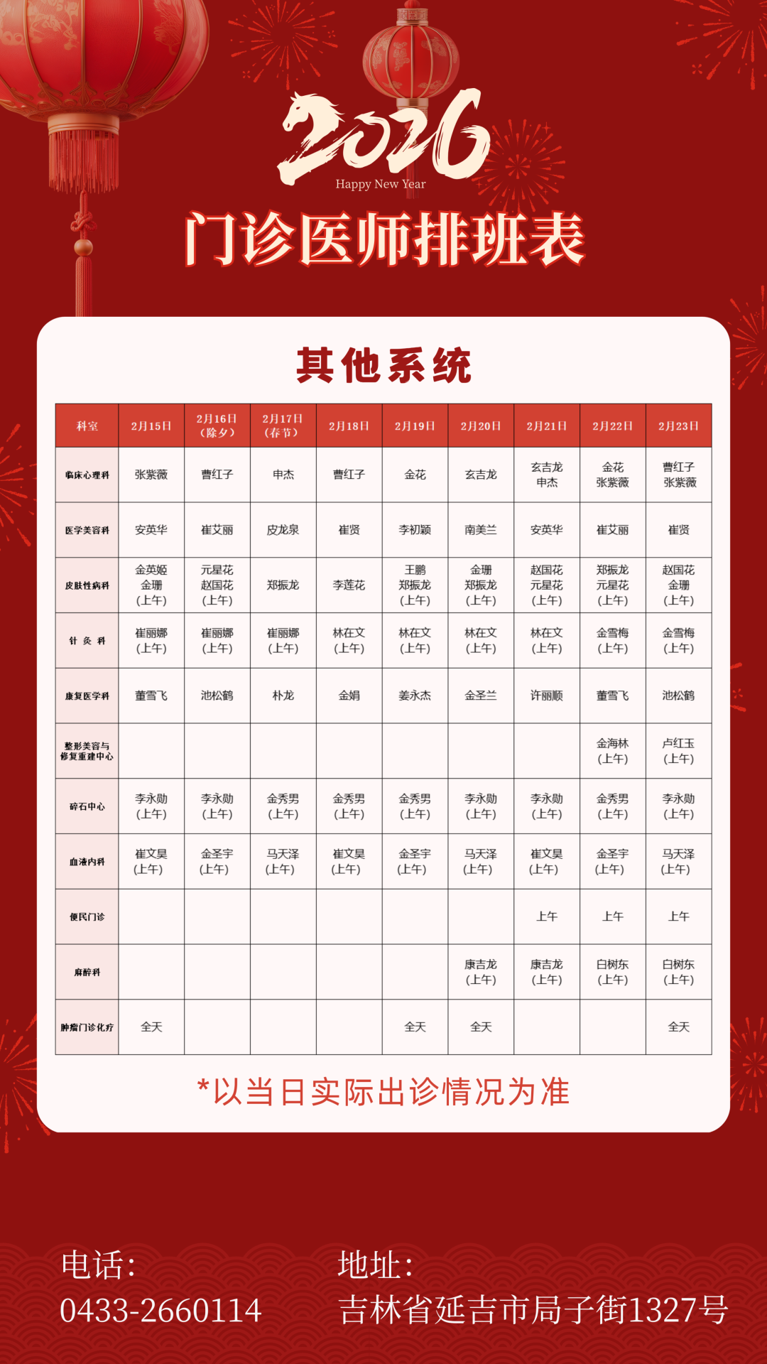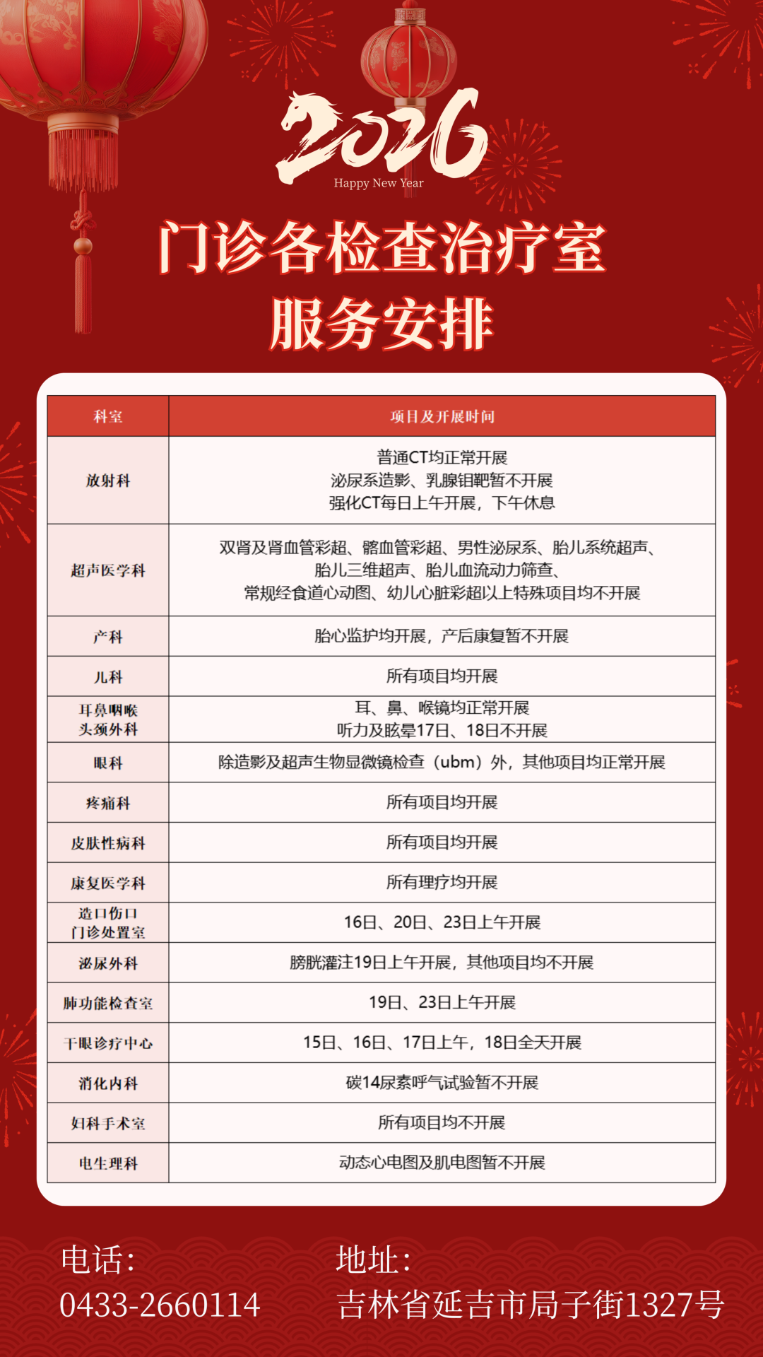 温馨提示|延边大学附属医院(延边医院)春节期间门诊工作安排
