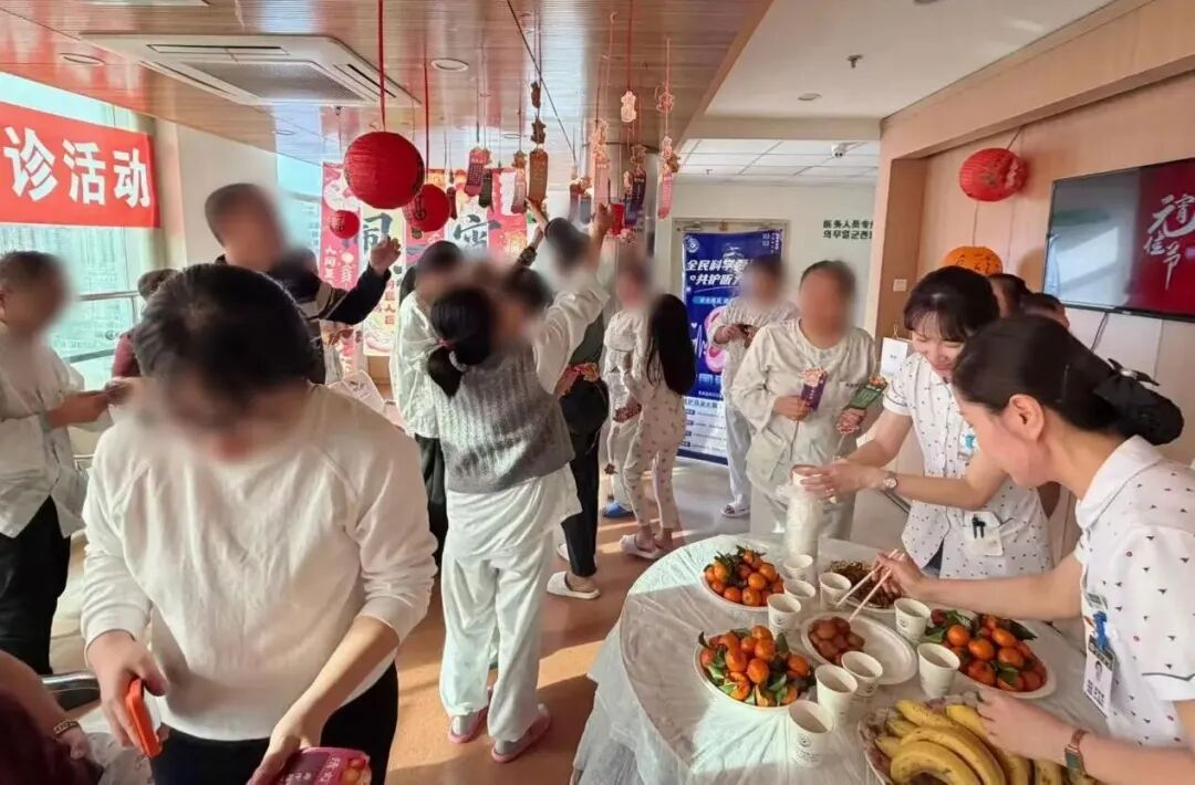 活动现场,护理单元还为患者准备了炸元宵、各类水果及小食,让大家在参与活动的同时感受浓浓的节日气息。每当有参与者猜出正确谜底,现场便响起阵阵掌声,猜对者可当场领取“平安喜乐”毛绒苹果挂件等精美伴手礼。小朋友捧着卡通贴纸蹦蹦跳跳,老年患者手持奖品笑意盈盈,整个疗区充满欢声笑语,让原本枯燥的住院时光变得温馨而有意义。