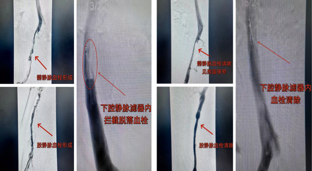 标准化诊疗流程:先通过3D静脉造影、超声定位血栓位置与血管解剖变异,明确潜在病因;再采用机械碎栓抽吸系统快速清除大部分血栓,配合导管定向溶栓溶解残余血栓,将溶栓周期从7天左右大幅缩短至24~48小时;针对髂静脉压迫、狭窄,同步实施球囊扩张与支架植入,从根源降低复发风险;高风险患者同期置入下腔静脉滤器,拦截脱落血栓、杜绝肺栓塞,后续可适时取出,实现全程安全防护。