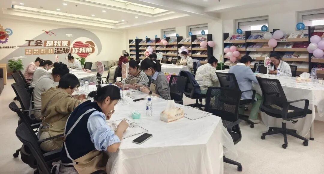活动现场暖意氤氲、氛围融洽,平日里坚守在临床一线的女职工们,利用工作间隙暂时放下工作,全身心投入到轻松愉悦的手工创作中。专业指导老师全程在场,耐心讲解创作技巧、细致解答疑问,手把手助力女职工们完成作品。大家围坐在一起,相互交流经验、切磋手法、协作互助,指尖翻飞间,一个个精致的珍珠画、一幅幅雅致的干花画、一件件灵动的香薰作品、一块块精致又实用的马克杯垫陆续成型,欢声笑语中,不仅舒缓了临床工作的疲惫,更收获了满满的成就感与幸福感,定格下属于巾帼医者的温柔瞬间。