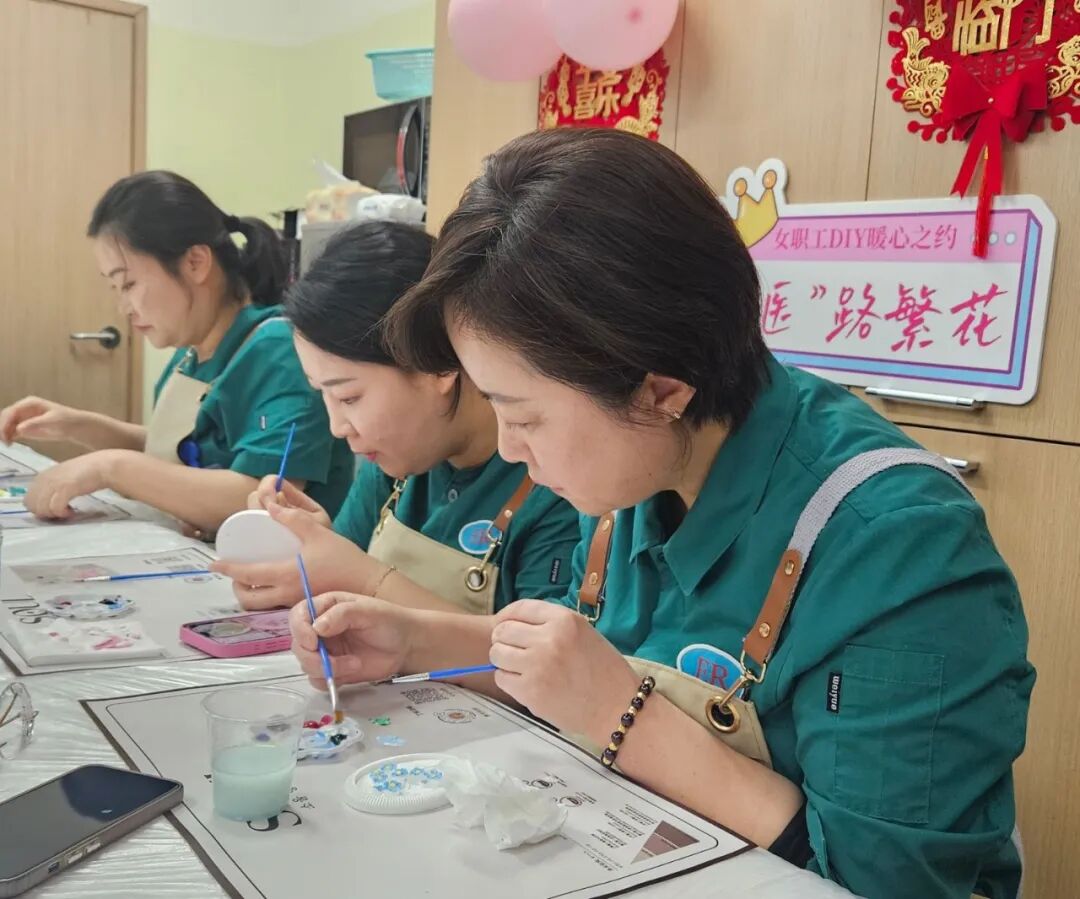 活动精心设置了珍珠画、干花画、香薰上色、马克杯垫四种特色DIY体验项目,兼顾趣味性与实用性,适配不同女职工的兴趣喜好。结合一线女职工工作繁忙、节奏紧凑的特点,活动特意安排在3月2日至6日期间,每日从中午11点持续至傍晚六点,错峰开展、灵活参与,确保每一位女职工都能在不影响诊疗工作的前提下,卸下忙碌、放松心情,沉浸式感受手工创作的独特魅力。