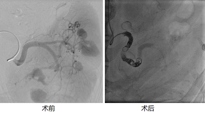 肿瘤科主任朴龙镇团队联合介入诊疗中心在DSA设备精准引导下,经股动脉穿刺置入导管,插管至脾动脉主干,精准释放微型弹簧圈栓塞材料,通过降低脾动脉血流压力达到快速有效止血目的,同时最大限度保留健康脾组织及免疫功能。手术顺利完成,术后患者生命体征迅速稳定,腹痛明显缓解,复查提示出血完全停止,治疗效果理想。