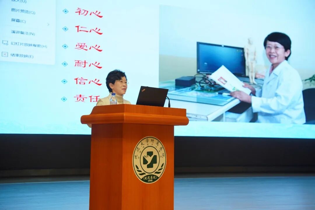讲座中,金香淑结合自身多年从医经历,用真挚朴实的话语、感人至深的行医故事,讲述了自己扎根边陲、医者为民的初心之路。她以“六心”践行医者使命,把患者的安危冷暖放在心头,用耐心的解释、悉心的照护、真诚的关怀,为无数患者点亮生命之光,抚平病痛忧伤。她的分享没有华丽的辞藻,却字字饱含深情,生动展现了边陲医者默默坚守、无私奉献、仁心仁术、大爱无疆的高尚品格,让在场每一位医护人员深受触动、倍感鼓舞,进一步读懂了医学的人文内涵,明晰了医者的初心使命。