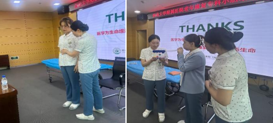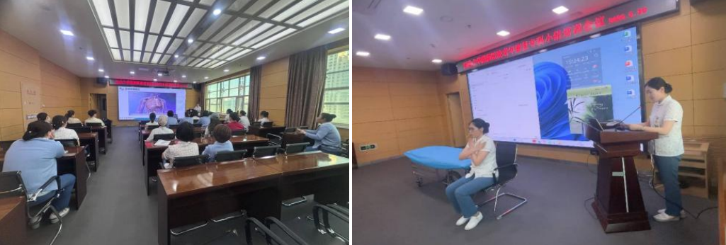 培训现场,专科小组成员围绕老年呼吸生理特点、呼吸康复评估要点、临床适应证与安全规范展开系统理论授课,重点讲解缩唇呼吸、腹式呼吸、三位一体呼吸操的核心原理、操作要点与临床应用场景。授课过程中,讲师结合老年患者体弱、配合度差异、多病共存等临床实际,拆解动作要领、强调训练节奏与风险防控,确保知识精准易懂、贴合临床。