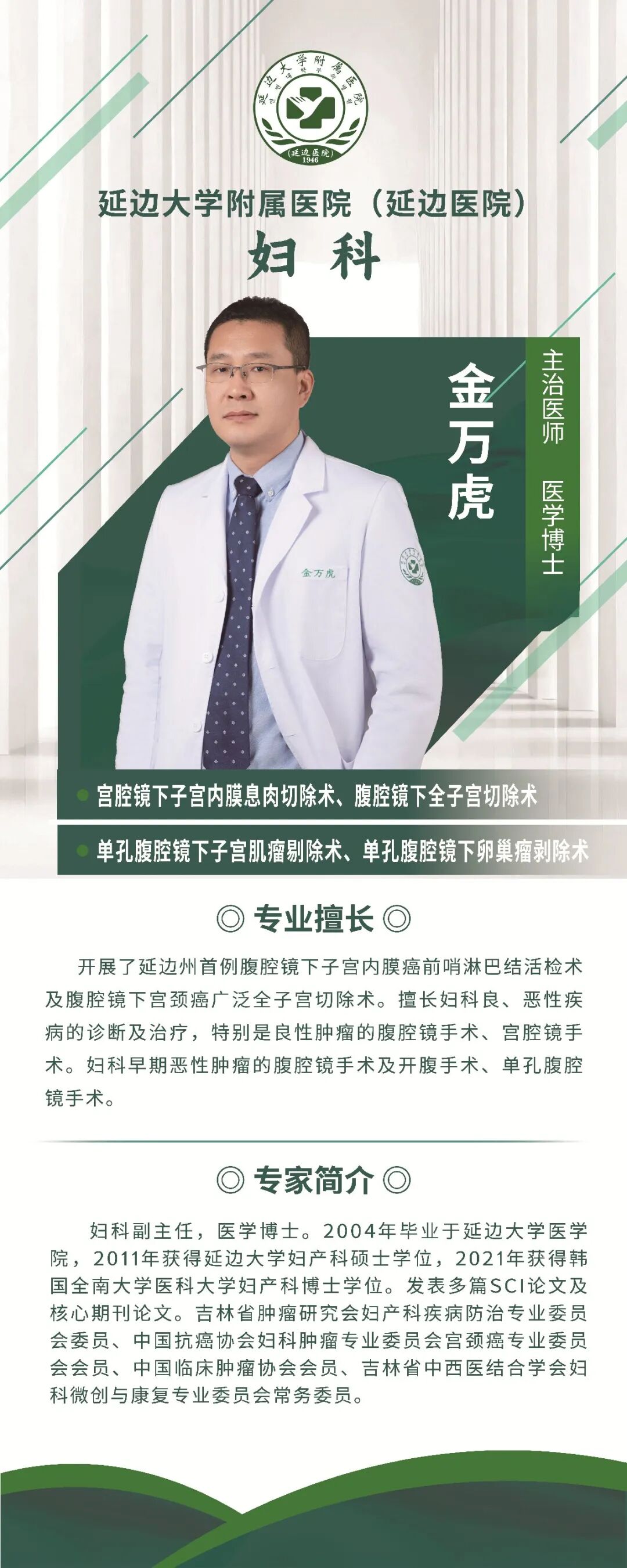 近期,延边大学附属医院(延边医院)妇科副主任金万虎在门诊接诊了一位绝经后出现不规则阴道出血的患者。该患者因缺乏医学知识、对疾病心存恐惧,一直拖延未就诊。金万虎详细了解病情后,结合临床经验,建议其尽快行诊刮术以明确病因。患者起初因过度恐惧犹豫不决,随后前往金万虎团队片丽娜主治医师处咨询。片丽娜耐心细致地讲解疾病知识、检查必要性及诊疗流程,逐步缓解了患者的心理压力,最终说服其接受检查。