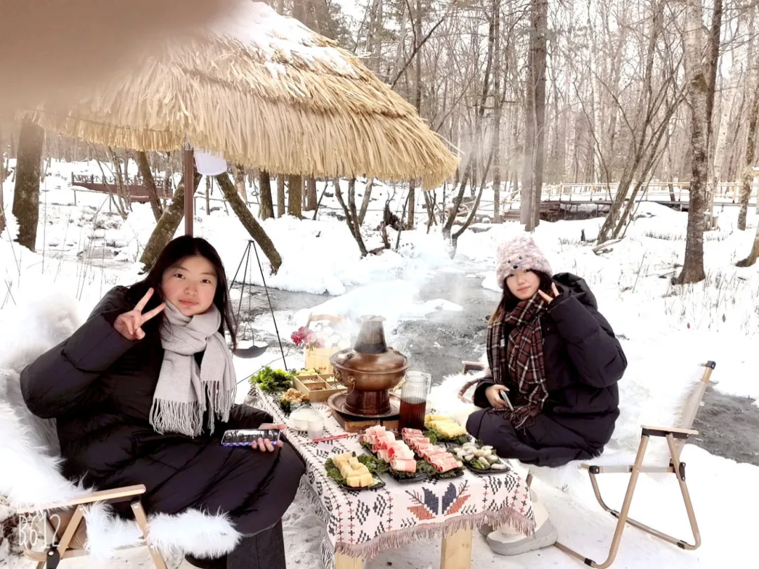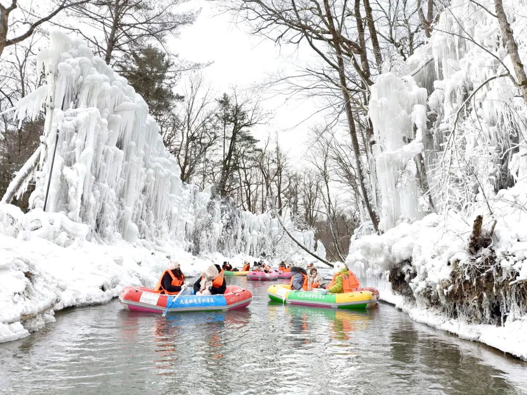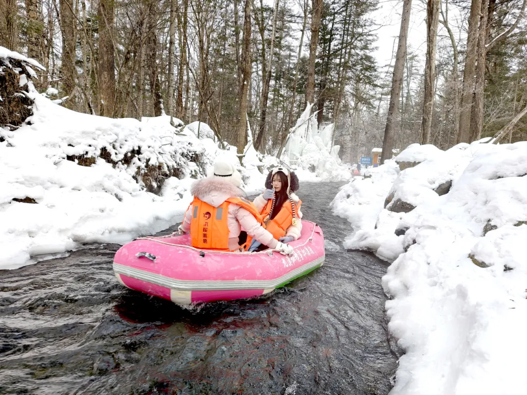 同时,活动创新性构建“漂流+”多元消费生态,推动文旅产业深度融合。“围炉煮茶”升级为“泉烹雪韵·茶席雅集”,冰瀑景观与温和焰火交相辉映,让游客在品茗中体悟冰雪文化韵味;“仙泉为引·参暖寒冬”主题雪地矿泉人参滋补火锅宴,以长白山矿泉水为汤底,搭配本地山珍与林下人参,打造独具地域特色的舌尖盛宴;“冰火奇趣·聚落市集”融合美食、旅拍、文创三大主题,从传统美食到非遗手作,全方位满足游客的沉浸式消费需求。此外,“漂流+温泉养生”“漂流+森林探险”等跨界组合线路,串联起安图县核心文旅资源,实现全域消费联动发展。