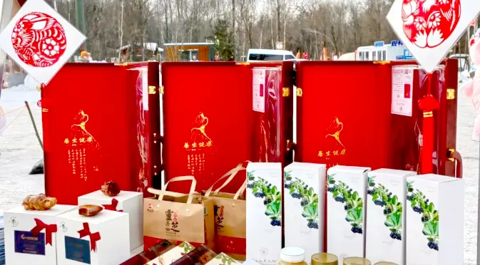 “安图好物”展示区则烟火气十足,长白山木雕、林下人参、蓝莓干、天然蜂蜜等琳琅满目的地产珍品,吸引大批游客驻足挑选,尽显地方特色与生态魅力。