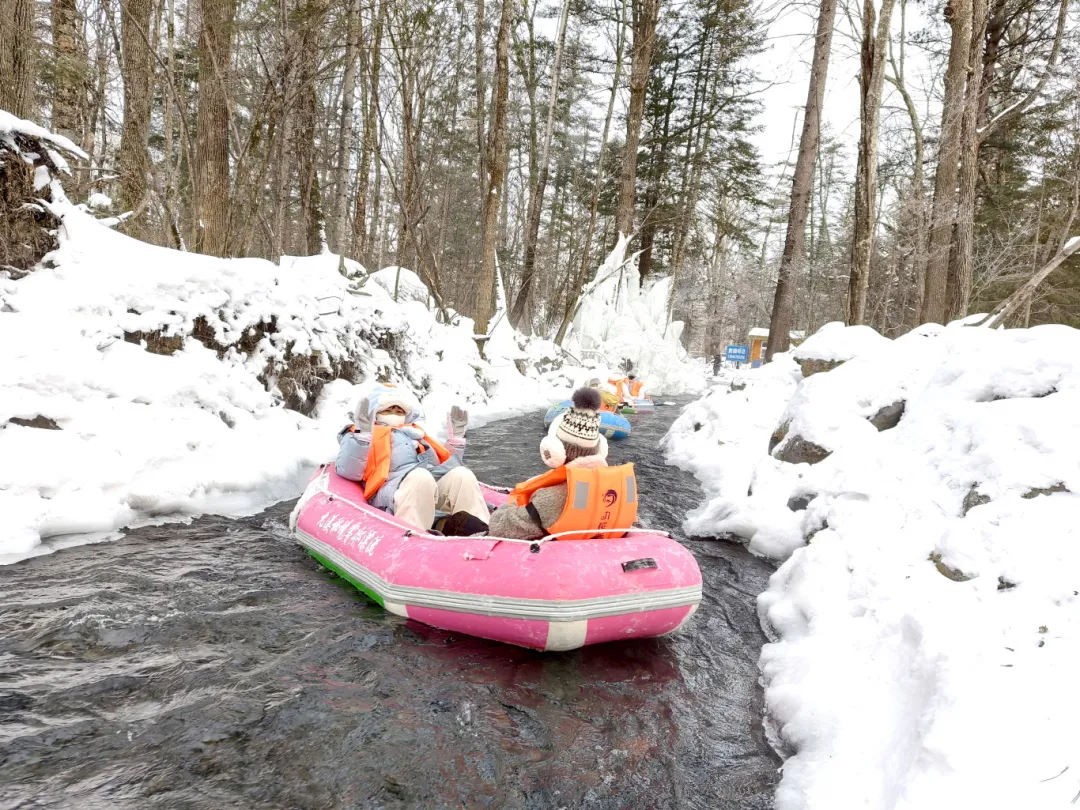 作为活动核心体验内容,矿泉水雾凇漂流系列项目极具吸引力。在核心体验区,游客包裹在特制漂浮垫里,在长白山矿泉水中感受“冰封世界”的极致宁静。