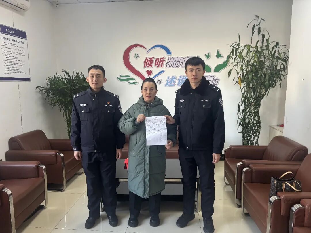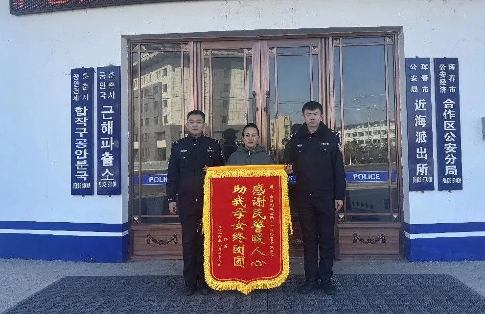 近日,一面印着“感谢民警暖人心,助我母女终团圆”的锦旗与一封感谢信,送到了珲春市近海派出所。辖区群众孙女士以此向深夜紧急救助走失老人的民警,表达最真挚的谢意与敬意。