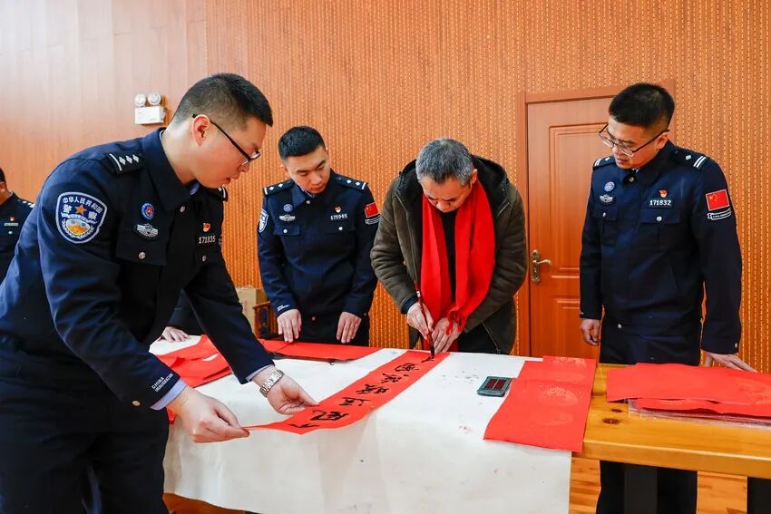 演出在庄严热烈的氛围中拉开帷幕。延边歌舞团、延边大学艺术学院等单位的文艺志愿者倾情演绎,为驻守国门边境一线的移民管理警察、海关关员及群众代表呈现了一场精彩纷呈的文化盛宴。朝鲜族经典歌舞《长鼓敲起来》热情奔放,融合江南韵律与延边风情的伽倻琴独奏《茉莉花·桔梗谣》别具韵味,展现了中华民族多元文化交融共生的丰硕成果。图们出入境边防检查站民警潘宏辰演唱的原创歌曲《图们边检永远跟着党》将现场气氛推向高潮,唱响了国门卫士忠诚奉献的坚定信念,道出了“守国门、防风险、保稳定、促发展”的铮铮誓言。演出在经典歌曲《红太阳照边疆》的激昂旋律中圆满落幕。此外,图们市文联的书画家们现场挥毫泼墨,书写春联与“福”字,为一线工作者和群众送上诚挚的新春祝福。