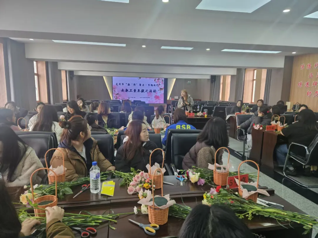 设置手工艺插花体验环节,女职工在花艺老师指导下创作花艺作品,在动手创作中陶冶情操、舒缓压力,感受生活之美。