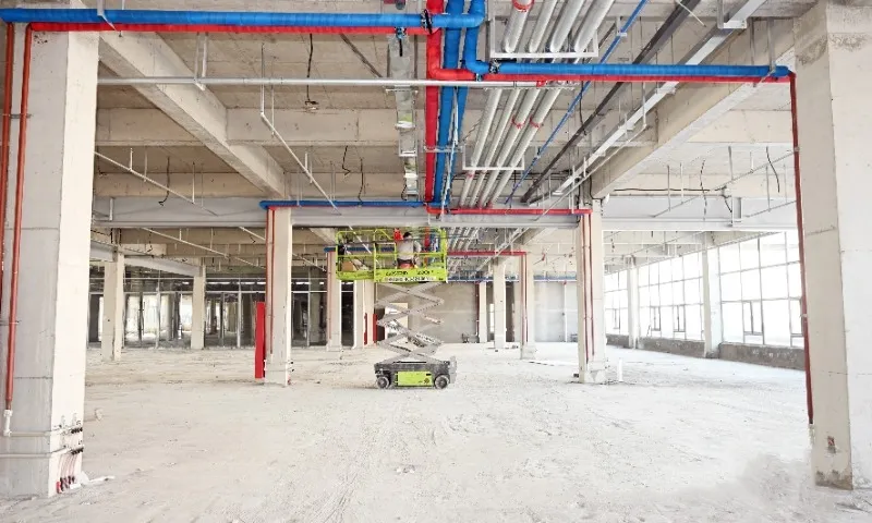 截至2026年3月中旬,项目建设已进入室内装饰阶段,各项工程推进高效有序。主楼完成土方开挖回填、地基基础、主体结构等基础工程,门窗、抹灰等初装修悉数落地;节能、电梯扶梯安装、水暖通风、强弱电、消防系统等配套工程全面竣工,场区道路基层与管线预留预埋工作同步完成。附属用房也已完成土方、地基、主体结构及水电消防预留预埋、抹灰等装饰工程,为后续投用筑牢坚实基础。