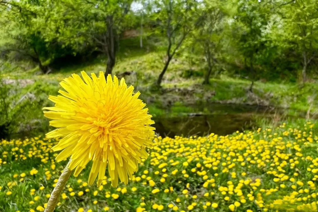 蒲公英花随风摇曳