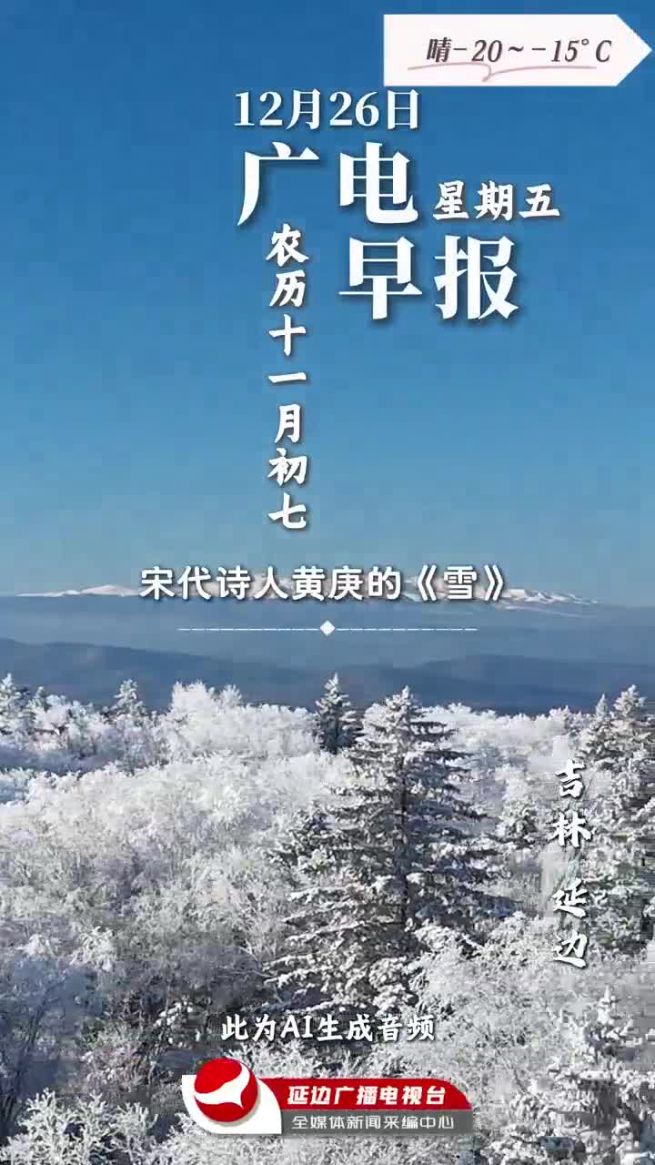 广电早报 今天我们来欣赏宋代诗人黄庚的《雪》。片片随风整复斜,飘来老鬓觉添华。江山不夜雪千里,天地无私玉万家。