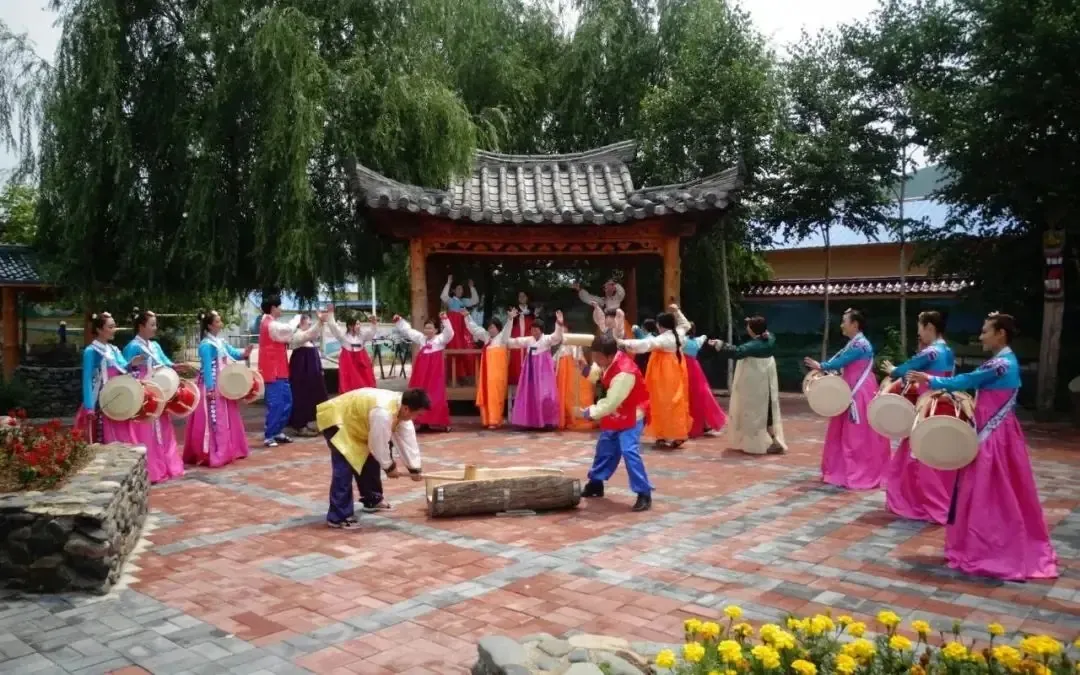 延边的秋,不只是视觉的盛宴,更是文化的交融。此时正值丰收季节,稻谷飘香,苹果压枝,朝鲜族群众载歌载舞,庆祝“丰收节”,打糕的香气与秋风一同飘荡在田野间。长鼓声声,唱响的是对大地的感恩,也是对美好生活的礼赞。
