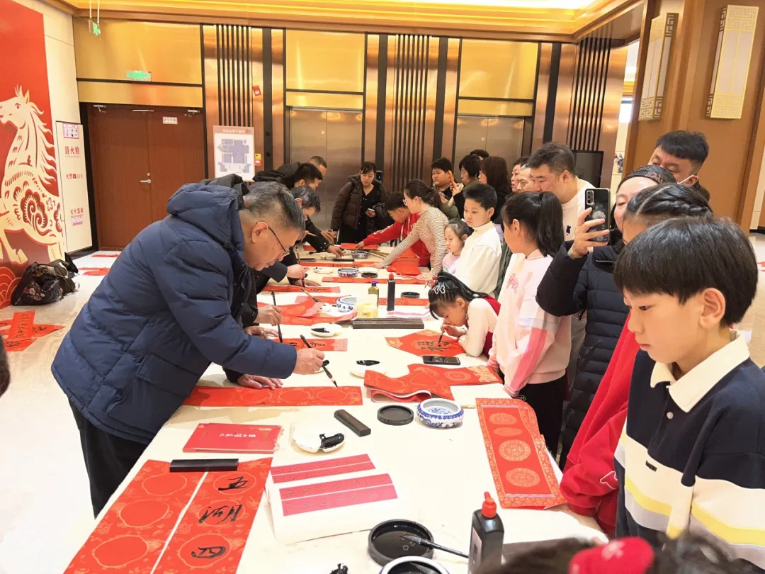 当天,来自延边书法家协会的7位书法家现场挥毫泼墨、激情创作,将满载真挚祝福、寓意吉祥美好的春联送到群众手中,为即将到来的新年增添喜庆气氛。此外,延边美术馆、延吉市朝阳小学还联合开展了美术馆里的艺术体验——“墨香润童心春联贺新年”书写创作活动,15名小学生在书法老师的引领和指导下,深入了解春联的历史起源和丰富内涵,并在创作体验中感知书法艺术的独特魅力,涵养文化自信、增强文化认同。