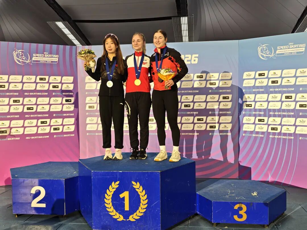 3月1日,2026年世界速度滑冰青年锦标赛在德国因泽尔圆满落幕。代表中国国家队出战的图们籍运动员太智恩表现出色,在女子集体出发和女子团体追逐两个项目中奋勇拼搏、发挥稳定,一举斩获两枚银牌,为祖国争光,为家乡添彩。
