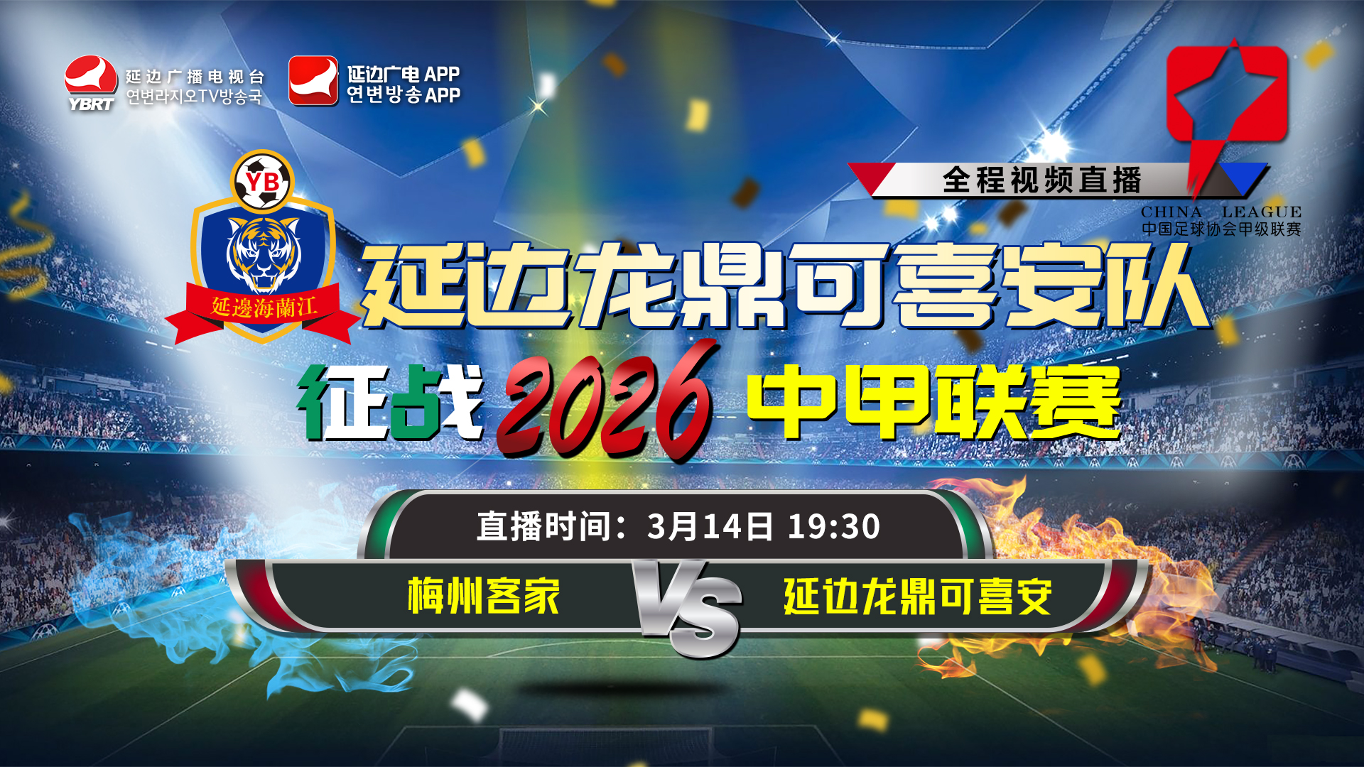 无论身在何处,同步见证赛场荣耀!3月14日19时30分,延边广播电视台朝鲜语综合频道、延边广播电视台官网、延边广电客户端全程同步直播首轮对决!