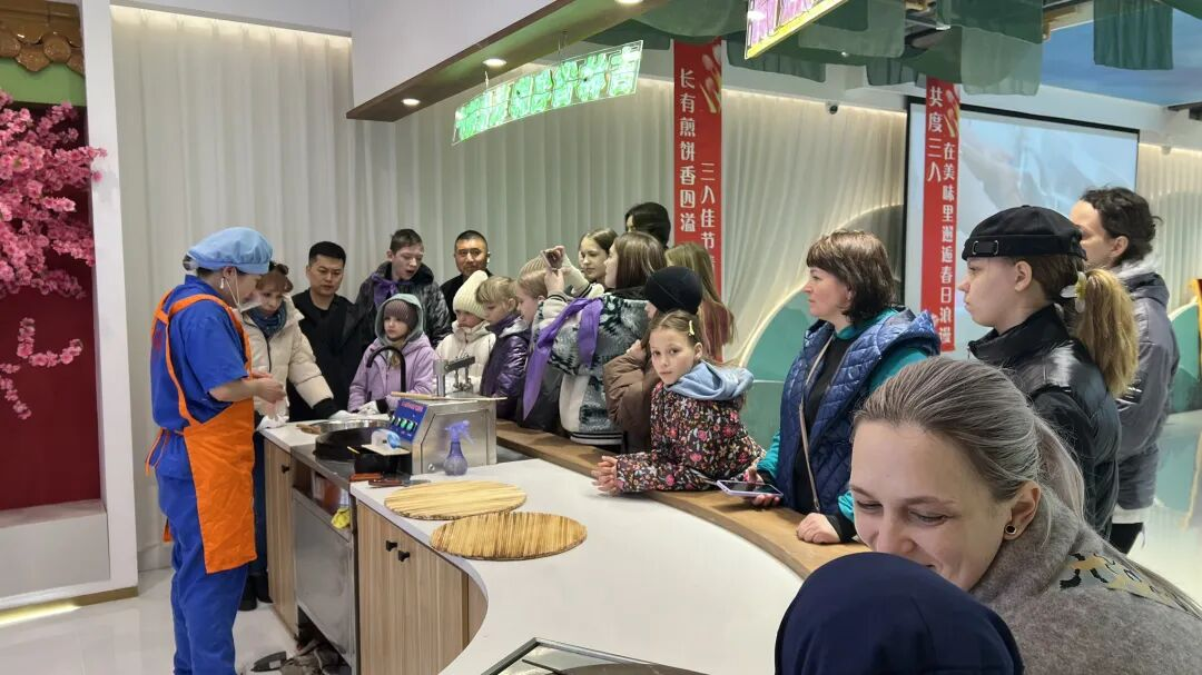 活动期间,俄罗斯青少年先后走进六鼎山文化旅游区,领略山水人文之美;探访敦化市历史博物馆,触摸敦化厚重文脉;在长有煎饼、渤海务窑沉浸式体验非遗技艺,感受传统工艺魅力;漫步城市商圈与夜游街区,近距离感受敦化的烟火气息与城市活力。