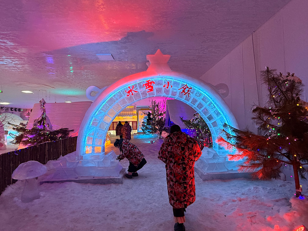 记者在山江冰雪小镇看到,场馆内冰雪雕塑色彩斑斓,冰车、冰滑梯等设施齐全,冰雪房屋与卡通形象吸引众多游客。主播们通过镜头实时传递现场欢快景象,详细讲解游玩亮点,让观众在云端感受冰雪乐趣。