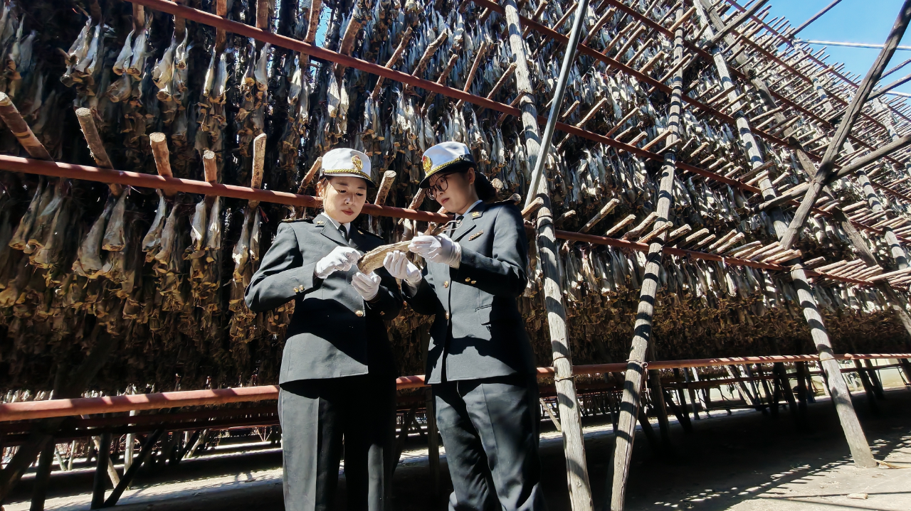 为此,延吉海关推行5+2全天候预约通关模式:周末、节假日查验服务不打烊,企业随时申报、关员及时上门作业。水产加工旺季,工作人员驻守企业一线不间断值守,前置保障原料快速通关,全程护航成品顺利出口,紧密贴合生产节奏,保障鳕鱼晾晒加工不误工期。