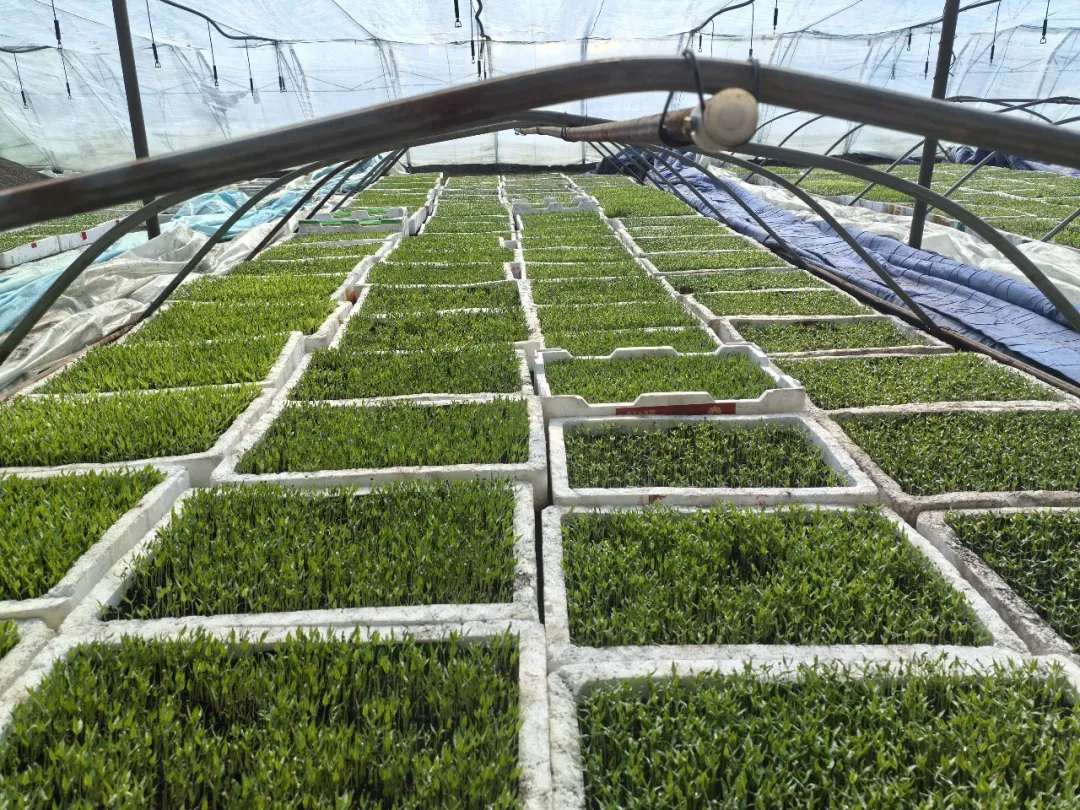 大棚负责人王钦山告诉记者,为规避春季育苗、装钵双重忙碌的压力,在去年10月底营养钵的制作与装土工作就已完成,让育苗工作更高效、更从容。今年2月底,他抢抓农时开展育苗工作,经过数日的精心照料,菜苗齐齐出苗。3月20日已启动移栽工作,预计4月20日前完成全部移栽任务,随后做好装箱、放风等环节,全力提高菜苗成活率,为后续丰产丰收筑牢基础。待精心管护后,这批菜苗将于5月10日陆续上市。