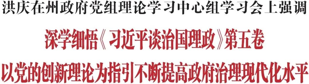 10月15日,州委副书记、州长洪庆主持召开州政府党组理论学习中心组学习会。他强调,要切实增强学习贯彻《习近平谈治国理政》第五卷的高度自觉,深学细悟笃行习近平新时代中国特色社会主义思想,以党的创新理论为指引不断提高政府治理现代化水平。