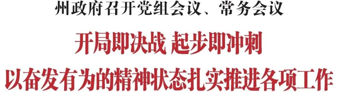 2月2日,州委副书记、州长洪庆主持召开2026年第3次州人民政府党组会议、十六届州人民政府第54次常务会议,传达学习贯彻习近平总书记近期重要讲话重要指示精神、国务院常务会议精神、省两会精神、省委农村工作会议精神,听取关于2026年政策性资金申报、全州培育“四上”企业总体情况及规上服务业重点行业企业培育情况的汇报。