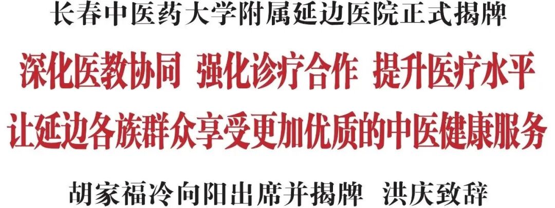 2月10日,长春中医药大学附属延边医院签约揭牌仪式在延吉举行。省委常委、州委书记胡家福,长春中医药大学校长冷向阳出席仪式并共同为长春中医药大学附属延边医院揭牌。州委副书记、州长洪庆出席仪式并致辞。