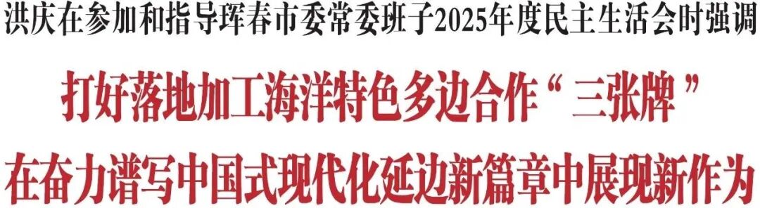 2月9日,州委副书记、州长洪庆参加和指导珲春市委常委班子2025年度民主生活会。他强调,要深入贯彻习近平总书记在中共中央政治局民主生活会上的重要讲话精神,牢固树立和践行正确政绩观,持续巩固拓展学习教育成果,认真抓好查摆问题整改落实,带头践行“笃信、务实、担当、自律”重要要求,在奋力谱写中国式现代化延边新篇章中展现新作为。