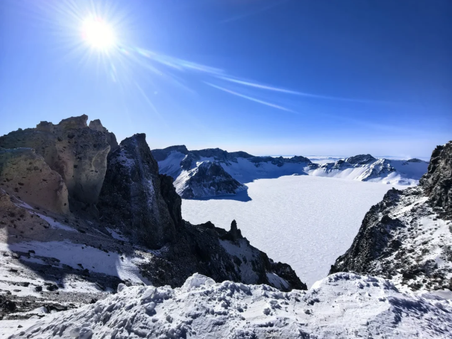 长白山景区是延边新年的第一站惊喜,冬日的神山褪去喧嚣,白雪覆顶,天池如一块冰封的蓝宝石,静谧而壮阔。