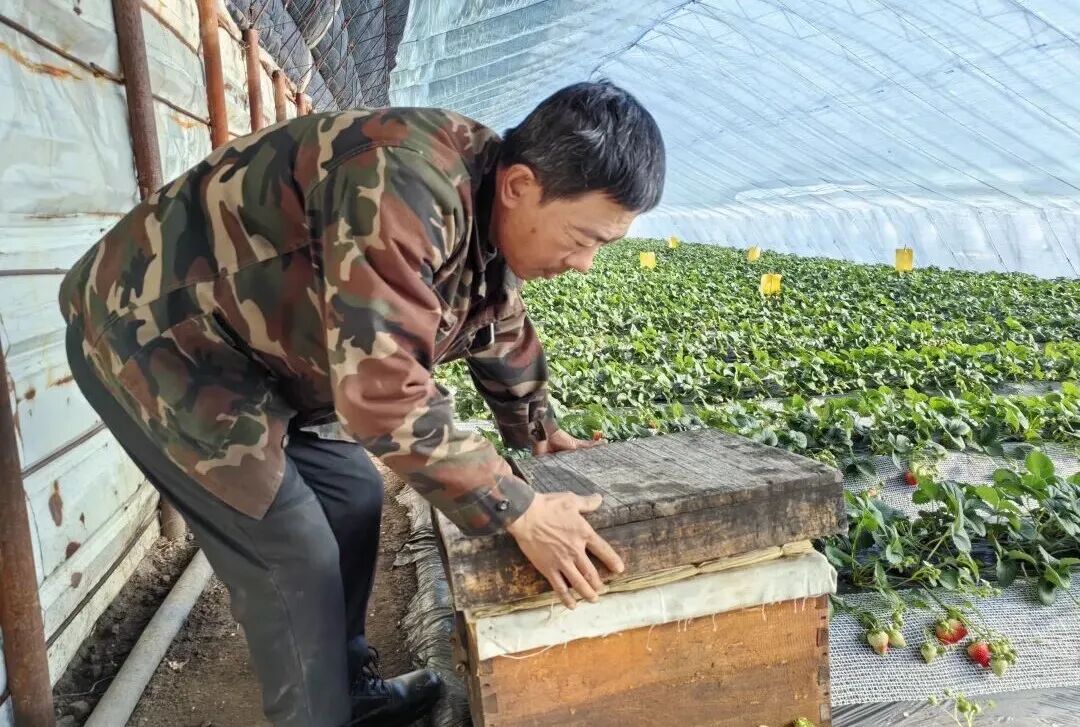大棚的中间位置,放着一个蜂箱,勤劳的小蜜蜂正在白色的草莓花间来回穿梭。“这些小家伙可是我们的‘宝贝’。”贾玉涛笑着说,蜜蜂授粉能让草莓果形更周正,畸形果率大幅下降,且蜜蜂对农药极度敏感,有它们在,就证明园内是不打药的,只施农家肥。据了解,蜜蜂授粉不仅能提高草莓产量30%左右,还能提升果实的甜度和口感,这也是老贾草莓深受市民喜爱的关键原因之一。