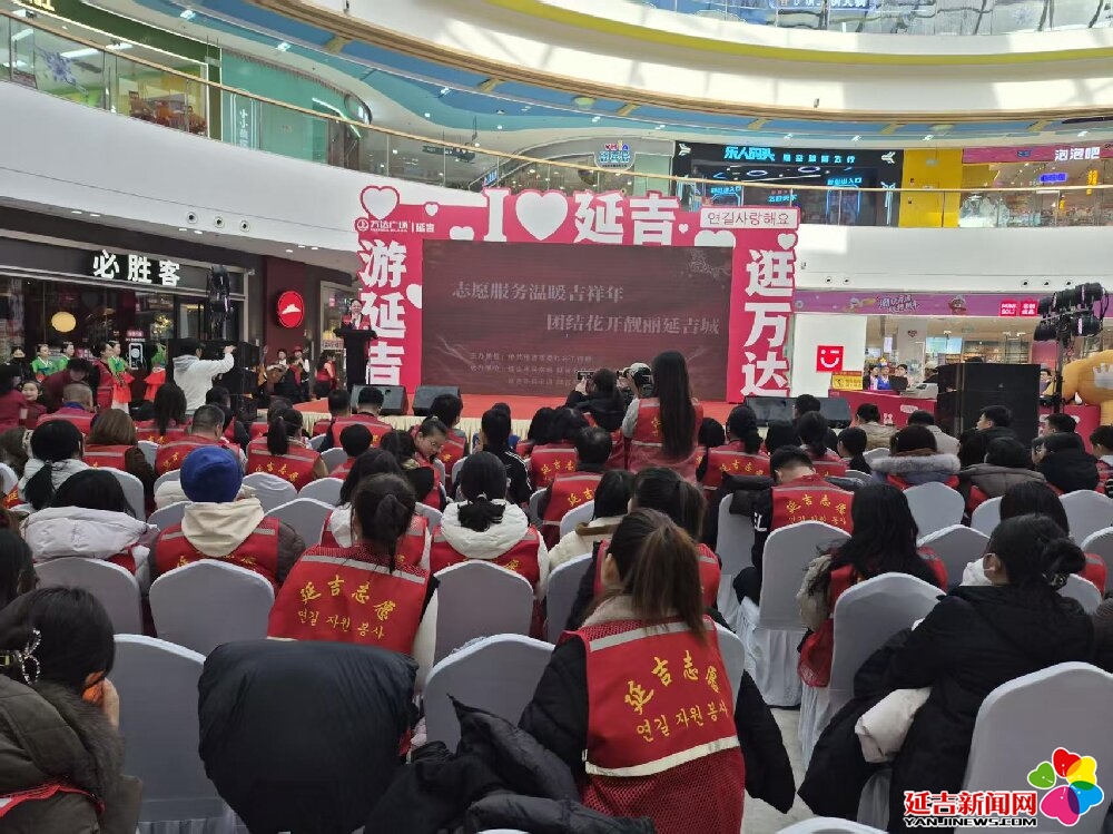 2月2日,“志愿服务温暖吉祥年 团结花开靓丽延吉城”延吉市春节志愿服务启动仪式在延吉万达广场举行。