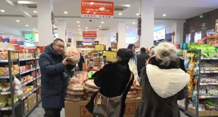 凉水镇依托“百年大集”“百年烧烤”特色资源,设置年货产品展销、驻村第一书记展销区域。琳琅满目的农特产品、热闹鲜活的市集氛围,让游客和本地群众在逛大集、选年货中感受最地道的边疆烟火,在互动交流中传递幸福与欢乐。